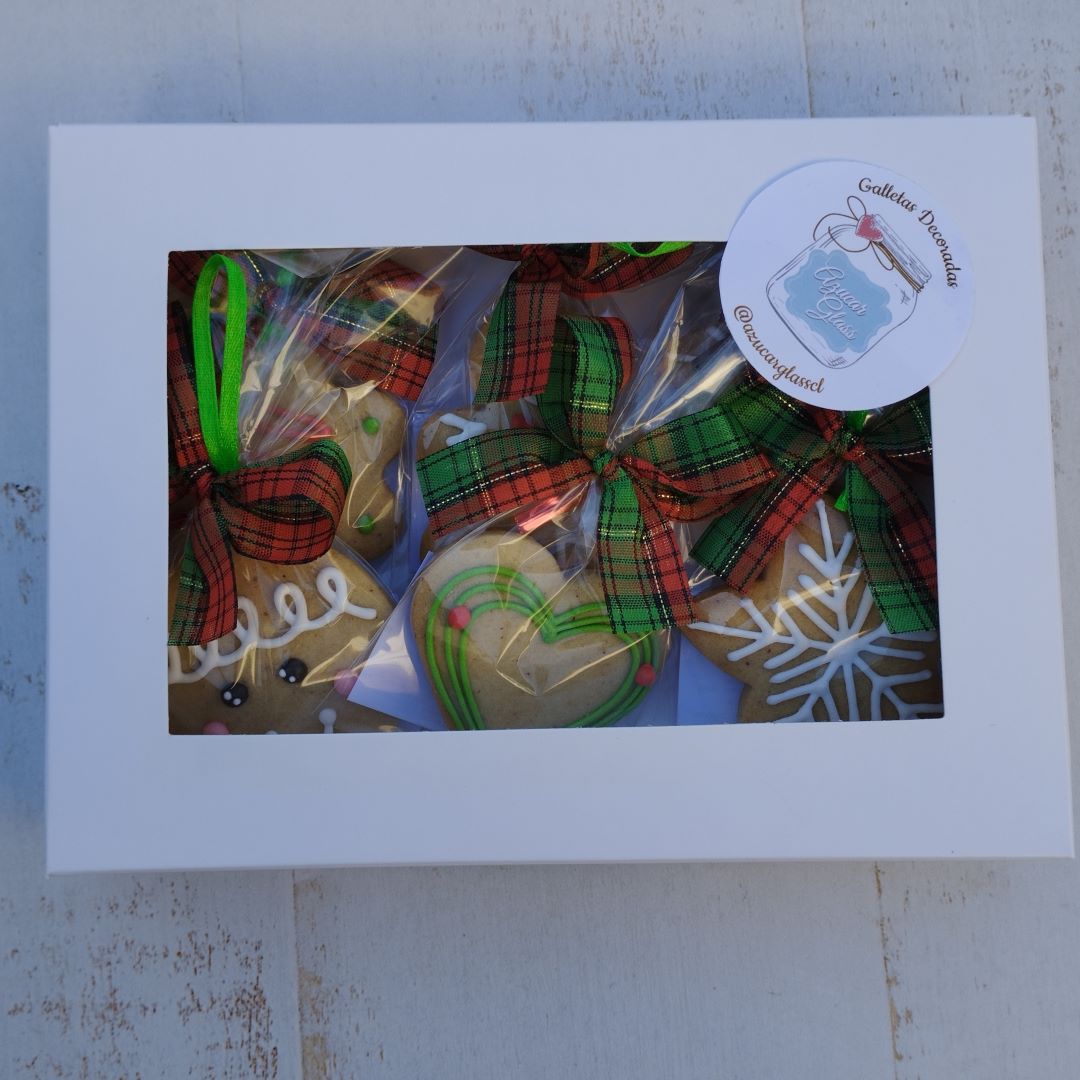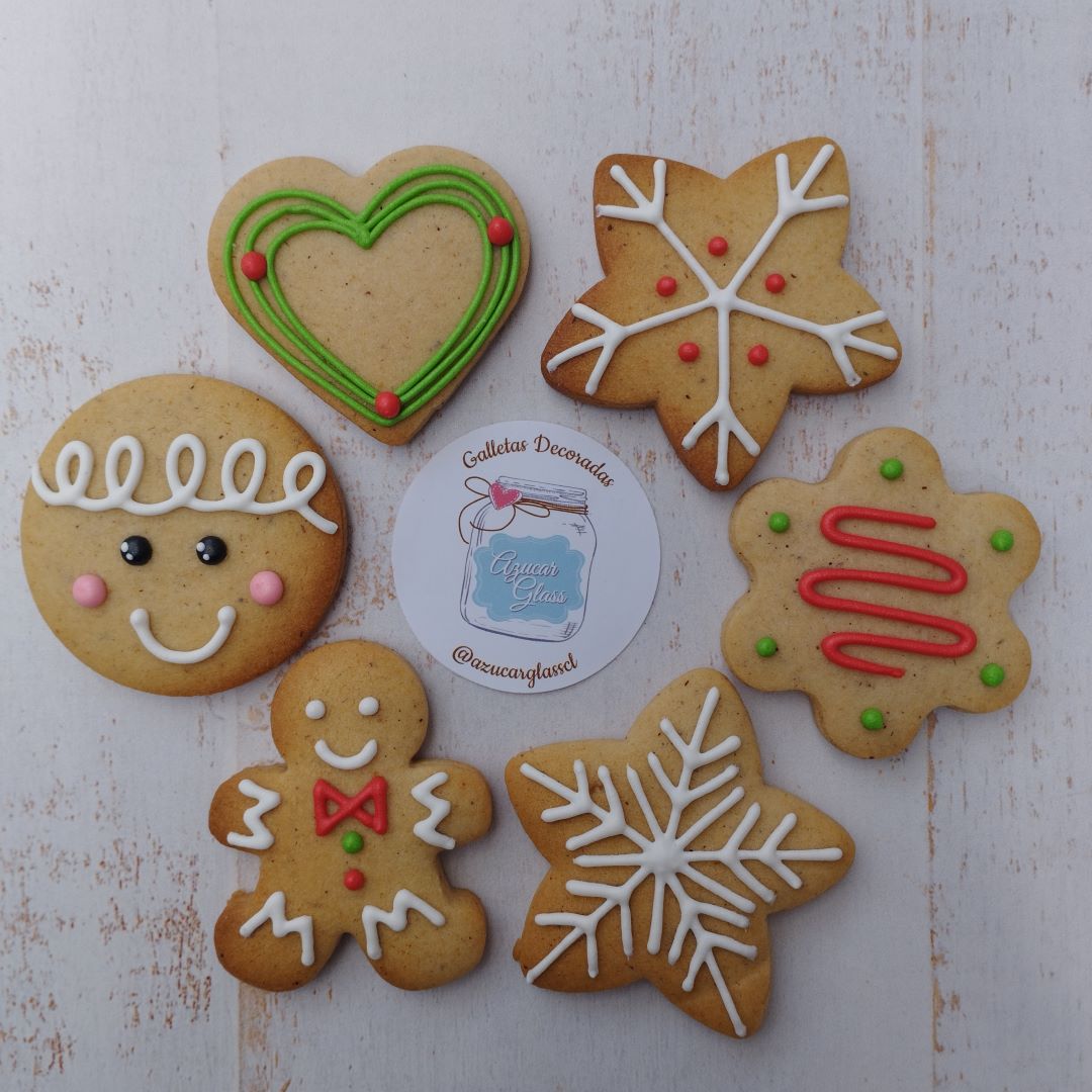 Set de 6 Galletas Navideñas: Figuras variadas y clásicas (Muñeco de Jengibre, Estrellas, Corona, Flor, Cara de Jengibre).
