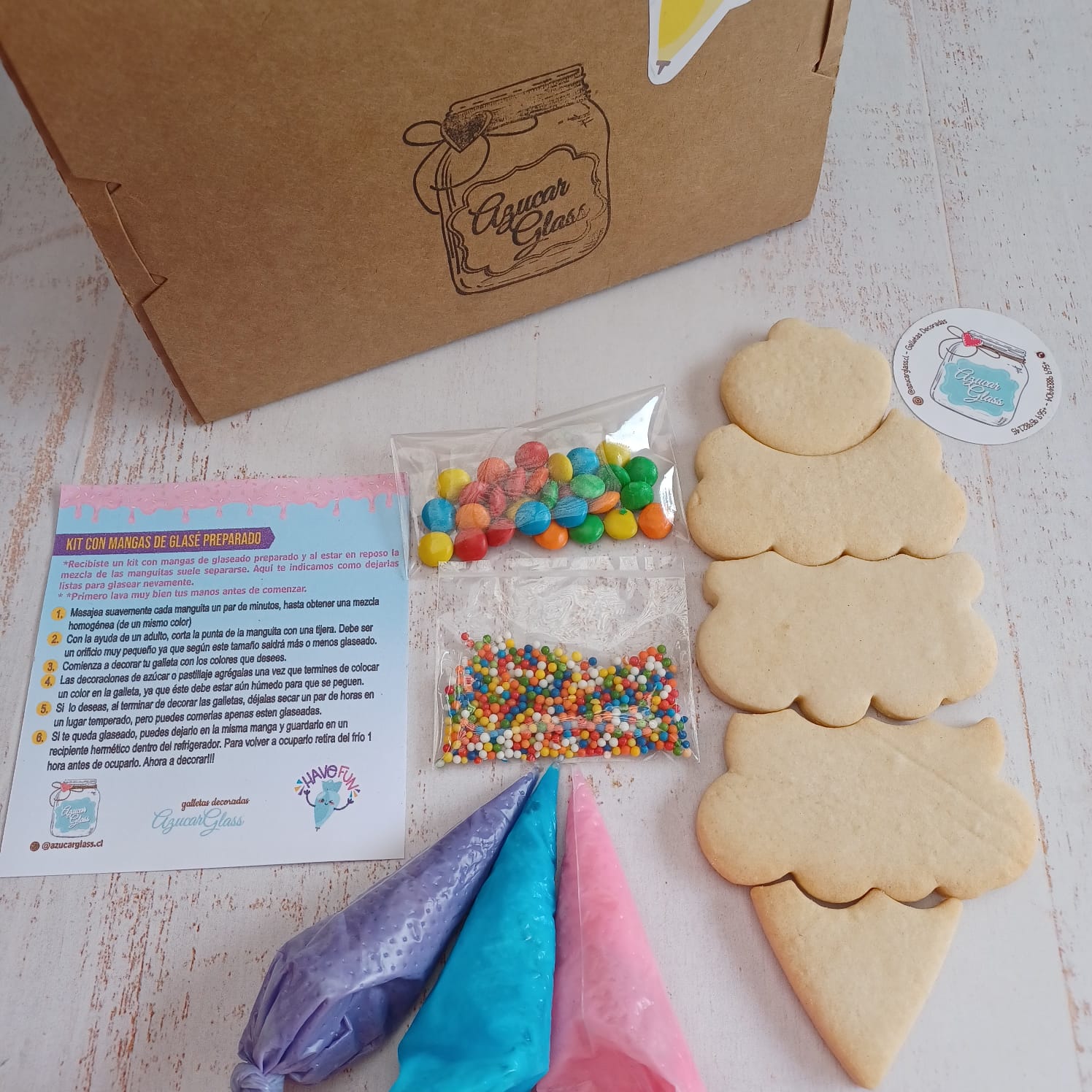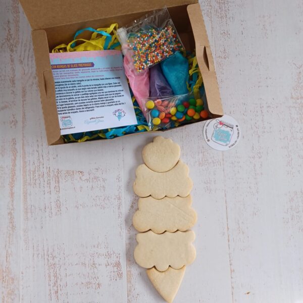 ¡Nuestro kit de galletas para decorar es la solución perfecta!. Con nuestras deliciosas galletas, glasé y pastillaje, podrás crear un helado personalizado que hará que tus amigos y familiares se vuelvan locos.